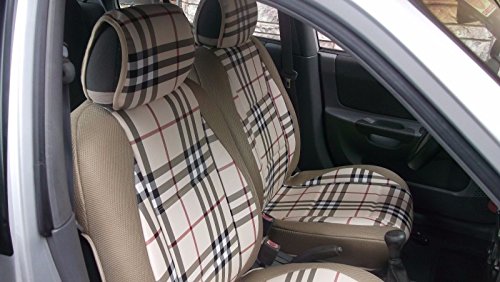 Mix LEATHERETTE & SYNTHETIC TWO FRONT CUSTOM CAR SEAT COVERS (Fits on AUDI A4 2005-2008 CONVERTIBLE Seats, BEIGE DIAMOND B2 / BEIGE SIDES)
